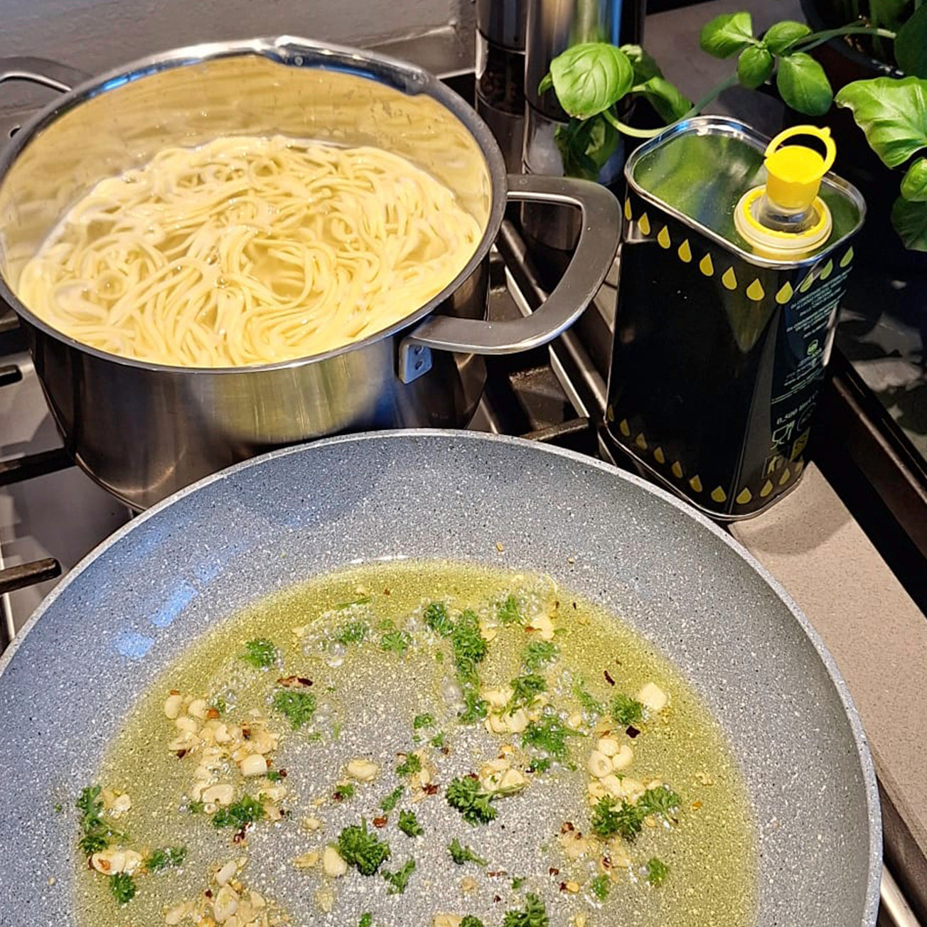 Ja, olijfolie kan worden gebruikt voor koken. Het rookpunt van extra vierge olijfolie ligt tussen 180-210 graden. Deze temperatuur bereik je niet als je op laag- tot middelhoog vuur bakt. Voor optimaal smaakbehoud adviseren wij altijd koud te gebruiken.